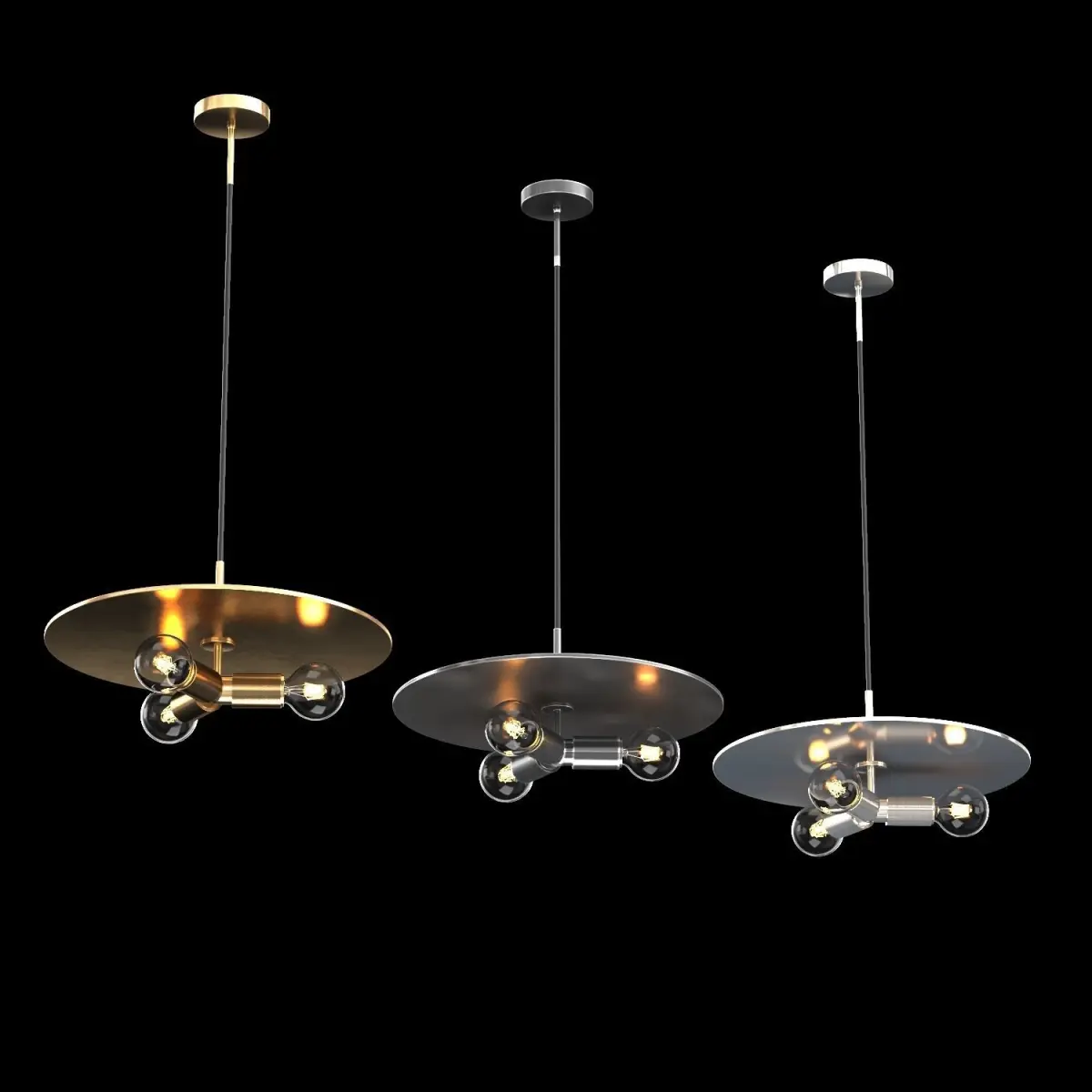 Name: UTILITAIRE DISK TRIPLE PENDANThttps://www.restorationhardware.com/catalog/product/product.jsp?productId=prod15070063&categoryId=cat14010021Restoration hardware, rh, UTILITAIRE, Ian K. Fowler, edison, loft, vintage, gold, metal, steel, ceiling, brass, bronze, for the bar, for the restaurant, for the kitchen, forliving room, bistro, lamp, chandelier, industrial, industrial, brassBrand: Restoration Hardware (USA)Collection: UTILITAIREVersion: 2013Preview: YesUnits: MillimetersDimension: 461.96 x 1436.76 x 885.92Polys: 55,272XForm: YesBox Trick: YesModel Parts: 51Render: V-Ray, CoronaFormats: 3Ds Max 2013, OBJ, FBX, 3DSATTENTION! Who works in the V-Ray version is lower than 3.1. Be careful, in some materials in the BRDF section there is Microfaset GTR (GGX), if your version is older than 3.1, thenBRDF field will be blank. Choose Blinn, Phong or Ward - which is preferable to you.