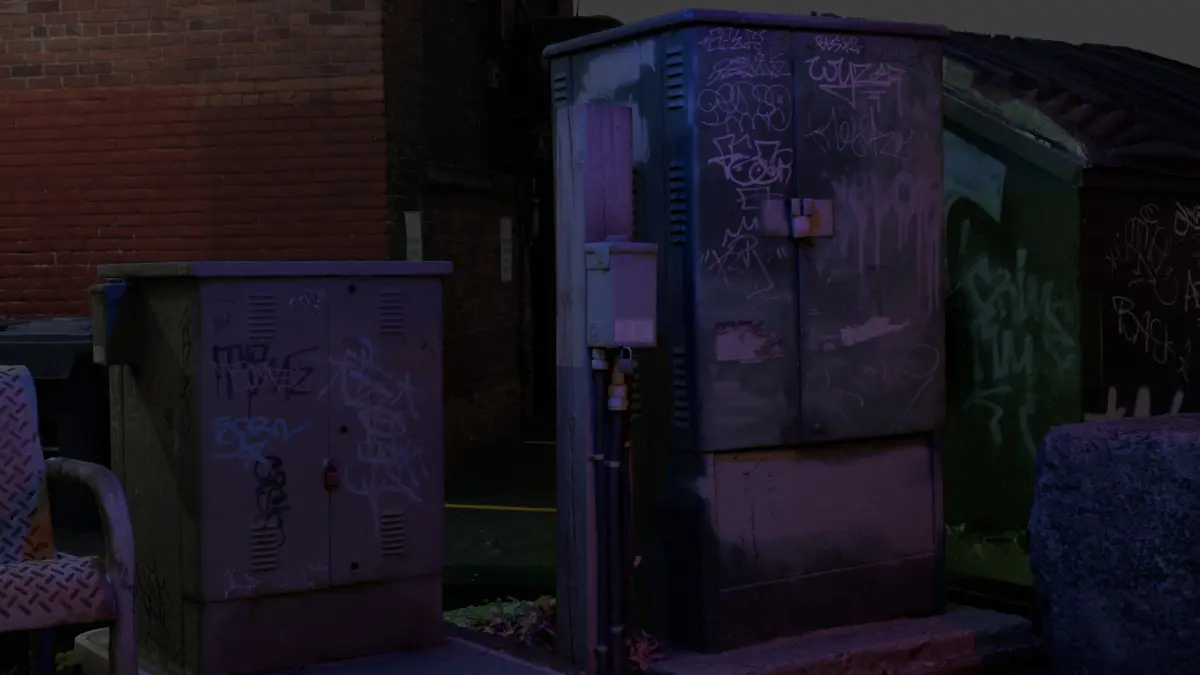 Light green utility box situated on a small grassy hill off a downtown street in Ottawa, Ontario, Canada. Captured the texture and the grafitti tags really clearly on this one and decided it was worth it to get its own upload.