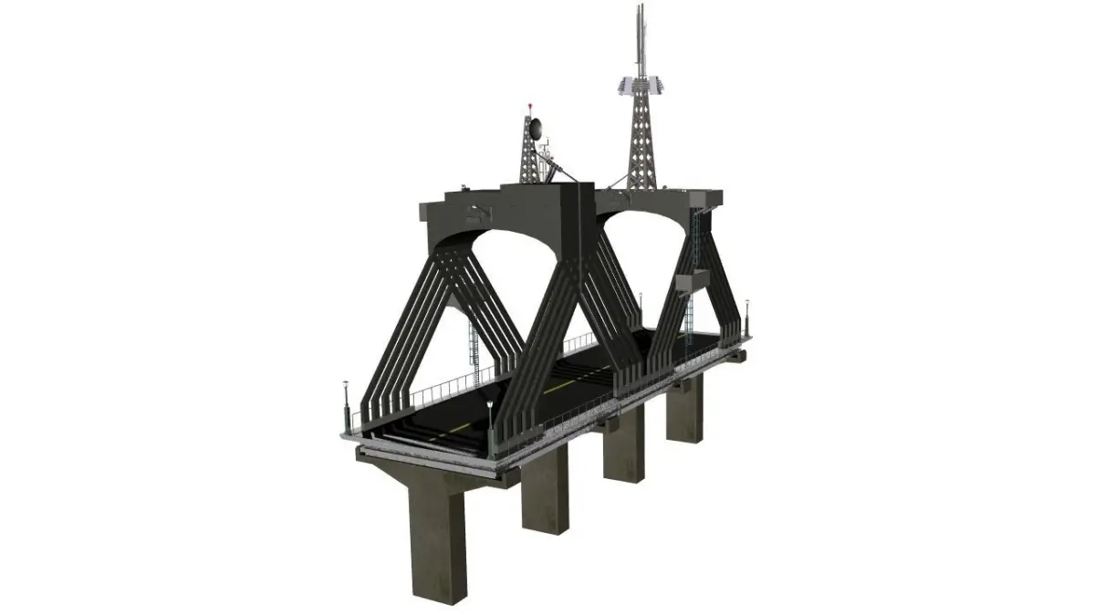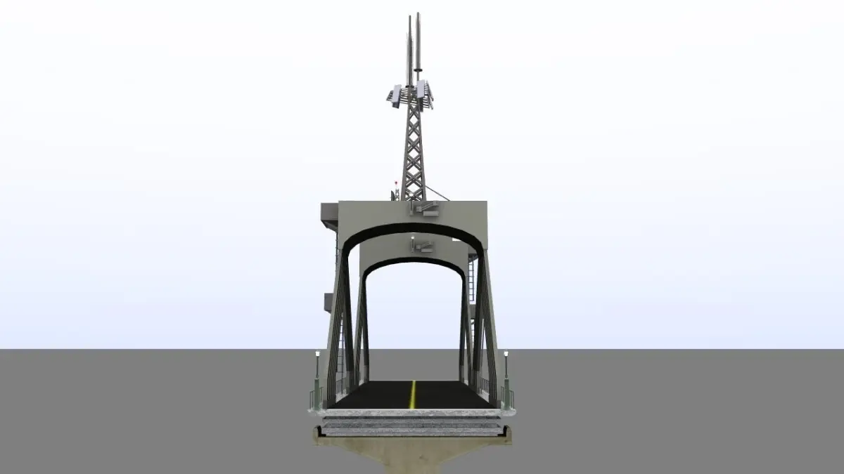 Utility Bridge for short crossings, has 2 platforms up top where there is a utility room, a weather instrument package, microwave tower, and Antennae Dish with attached grounded wiring for lightning safety. Comes in LWO or OBJ format. Just came off the top of my head this creation...strange ..a utility bridge. Two UV textures also for bridge supports and the road across it.