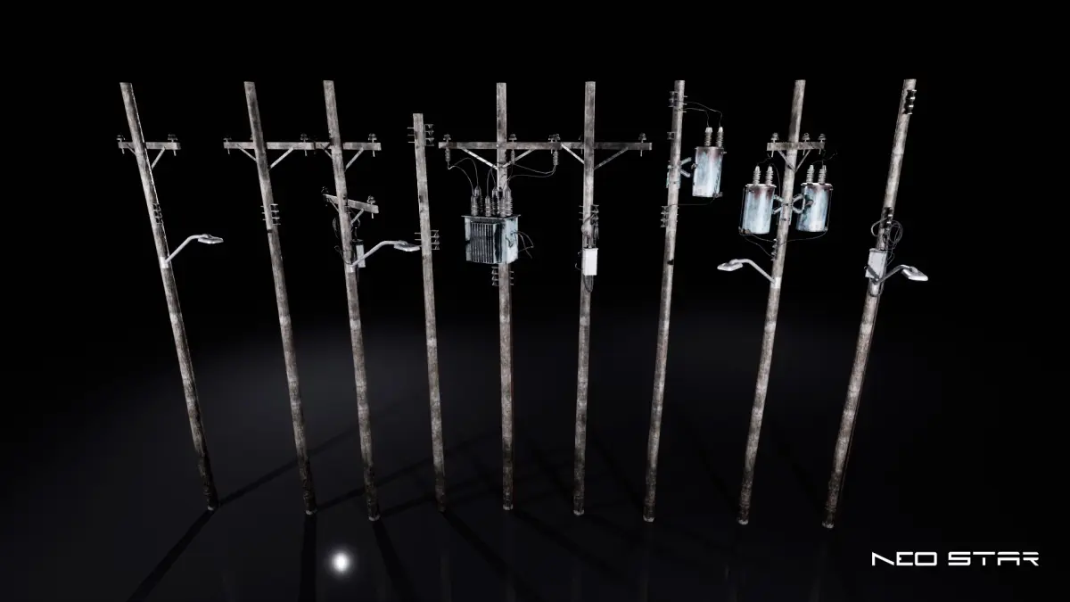This pack includes 9 realistic utility poles, they are perfect for populating urban environments in video games, 3D animations, architectural visualizations, and virtual reality experiences. The models are designed to be easy to import and use in game engines.