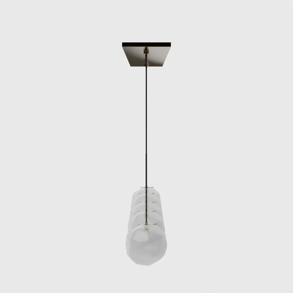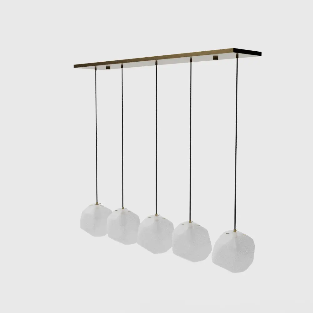 This Clean Linear Shaped 5 Lt Pendant Features Frosted 8" Geometric Shaped Glass As Its Celestial Focal Point Accented With A Rich Matte Antique Brass Finish.