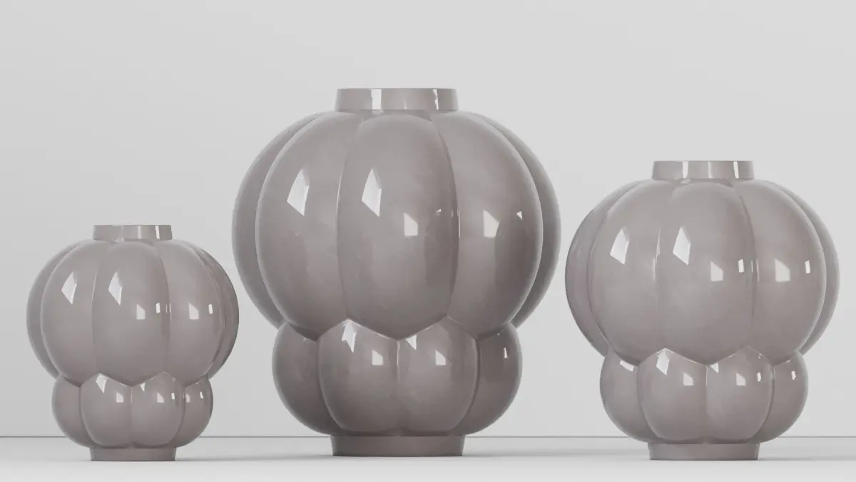 Uva vase is a modern decorative piece produced by AYTM. Model dimensions: d=26cm h=28cm, textures: light grey glossy.
