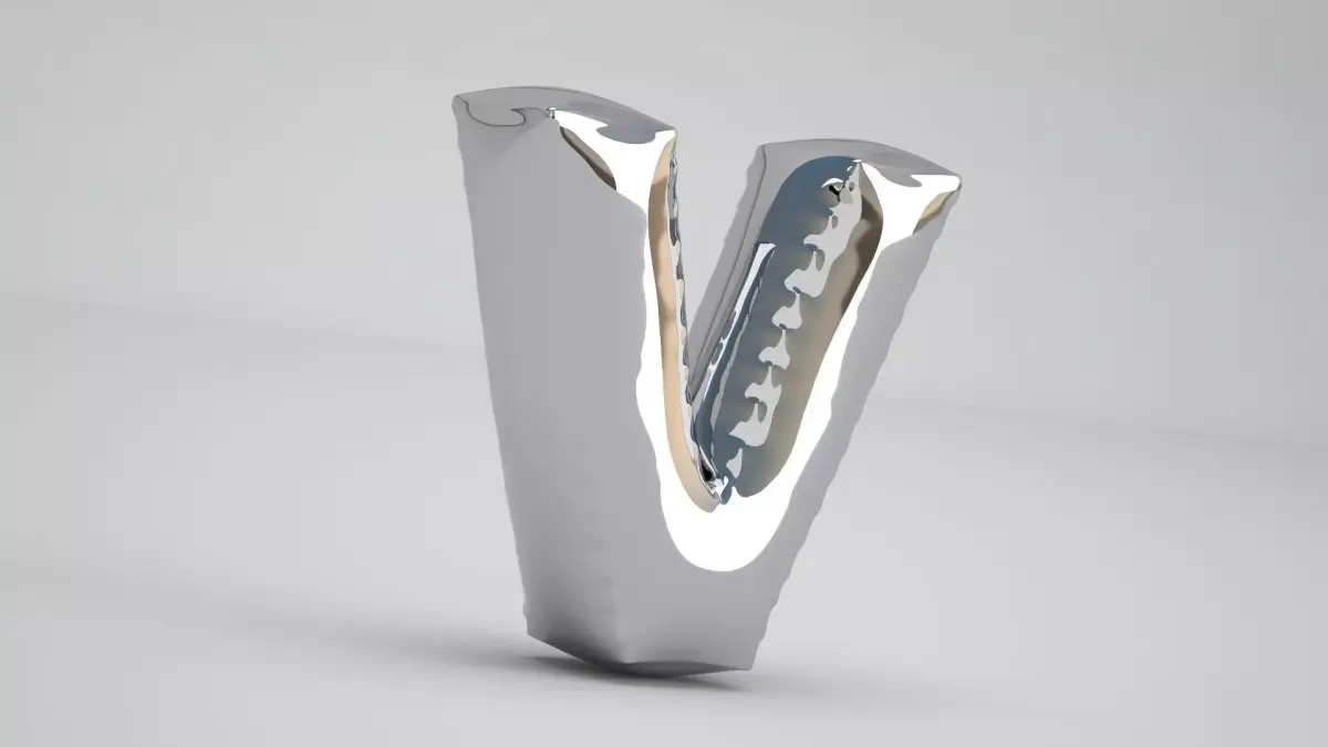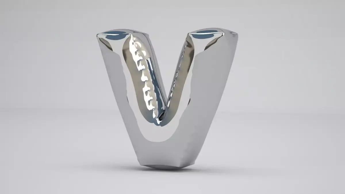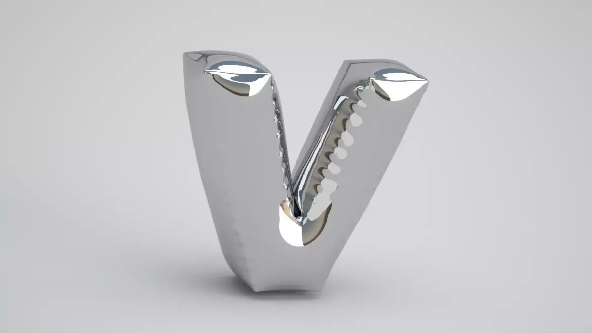 Realistic 3D Model OF Balloon V Alphabet Silver
