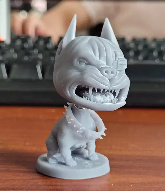 This design based on the special cyber-bulldog styled bobblehead in V's car from the game Cyberpunk 2077. I love the game and want to bring its props into real life. Hope you like it!