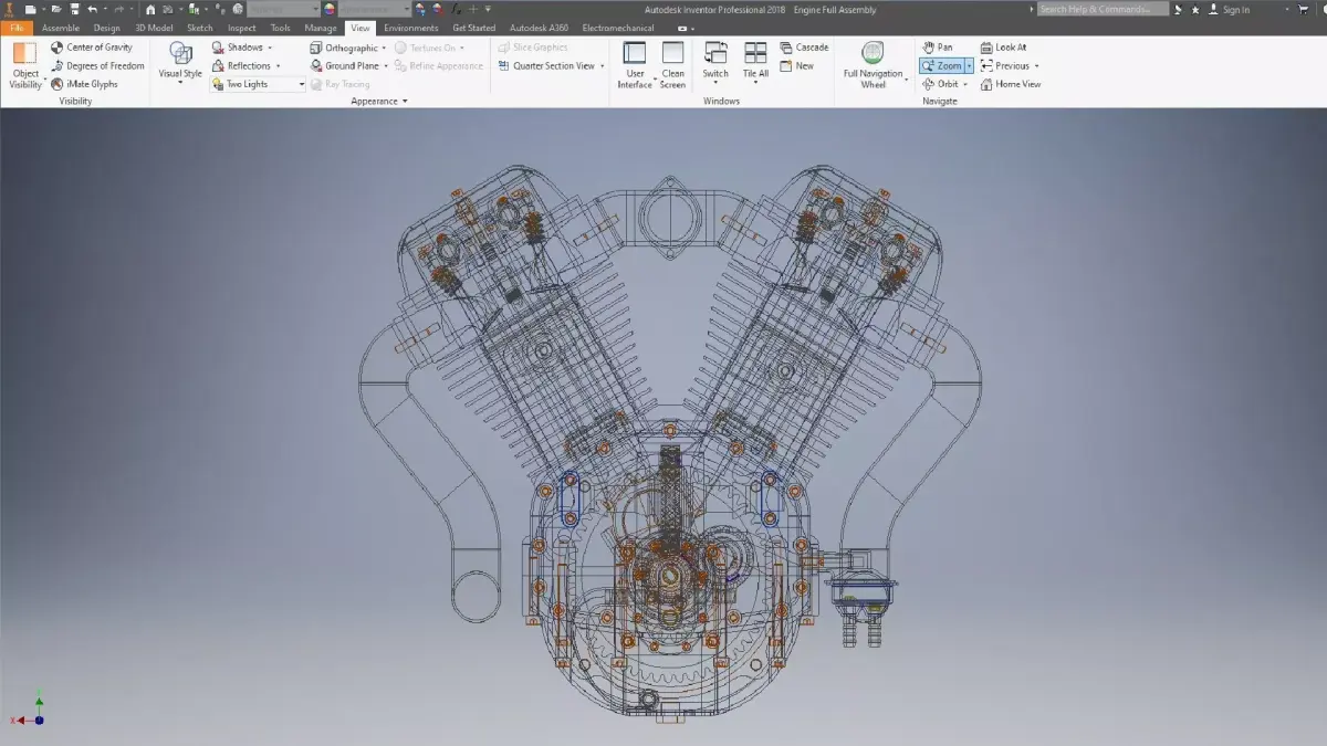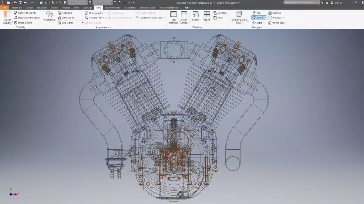 A detailed V2 Engine Full Assembly 3D model featuring precise mechanical components, realistic proportions, and high-quality geometry. Ideal for engineering visualization, product rendering, technical study, and mechanical animation.