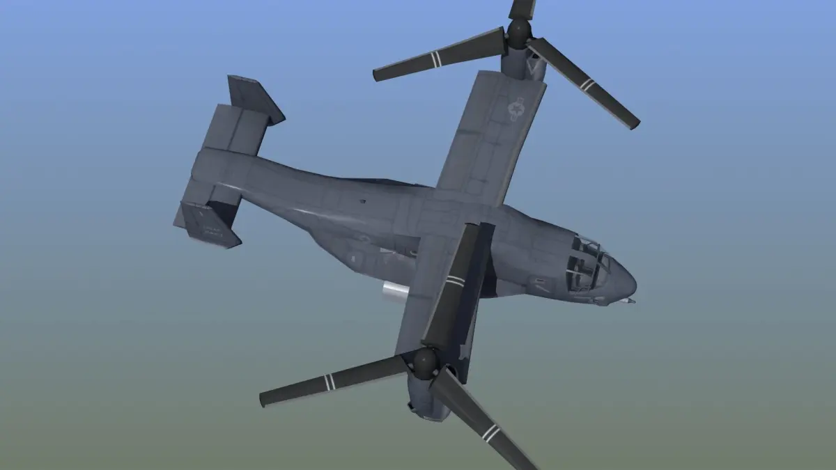 V22 Osprey tilt rotor aircraft, US Military. Great multipurpose 3D model (ideal for offline rendering or real time uses such as games or simulation).