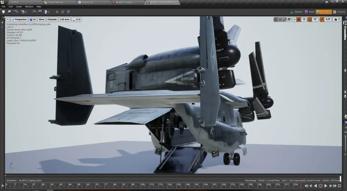 All of the movable are rigged and animated, like blades (advanced composite rotor) rotation and fold, loading ramp open, refueling probe, wing deice rotating etc.