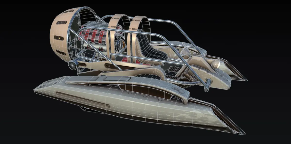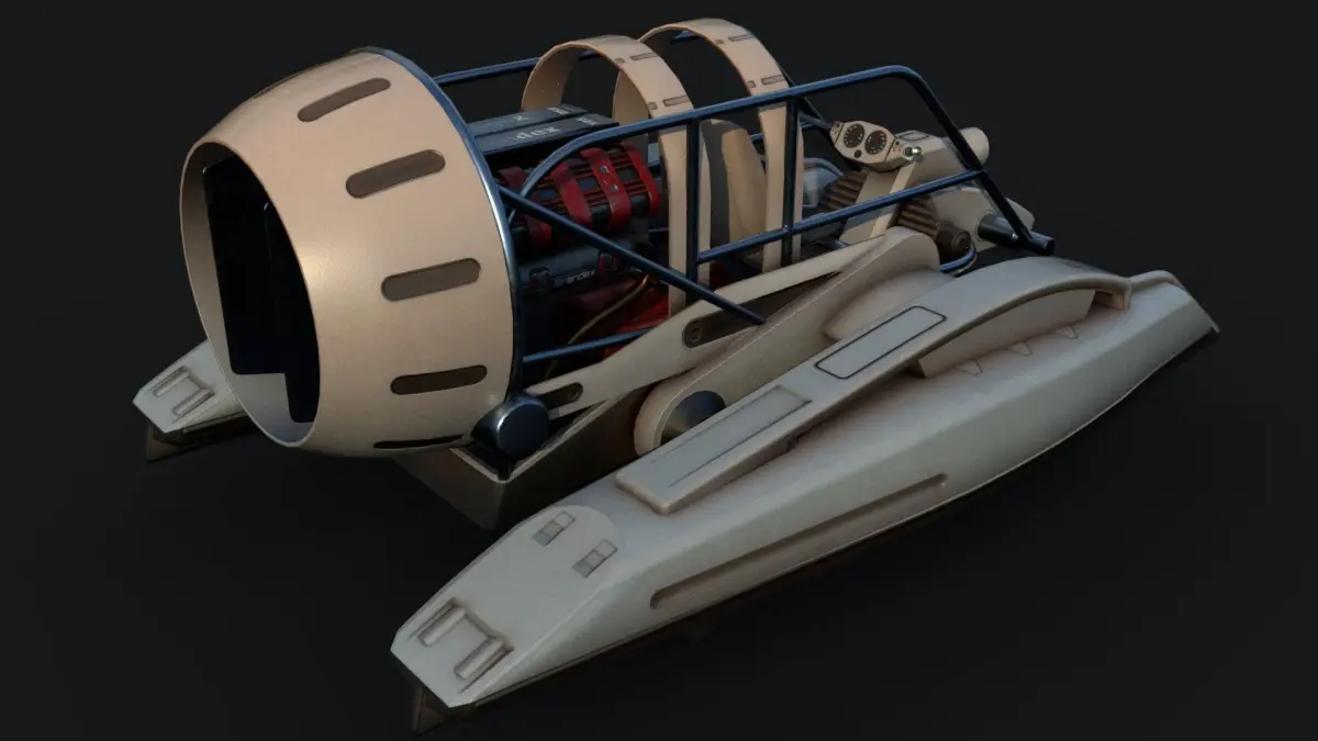 The next generation of airboat racing at your fingertips, powered by a immense V8 engine, this muscle car of the ocean will leave your competitors in your wake. The original inspiration came from the airboat from Half Life 2, I wanted to create a more robust and modern take on the iconic vehicle.