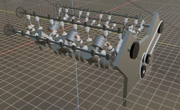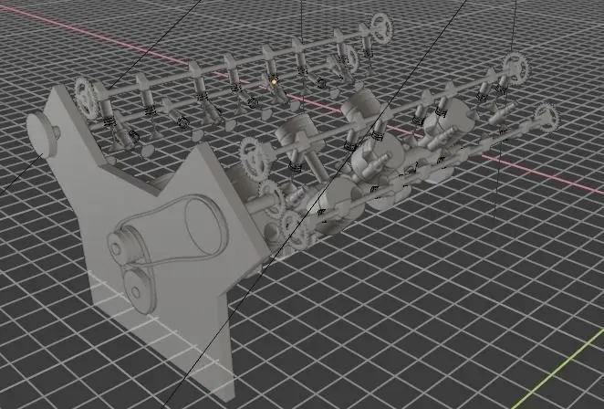 > What things i have in it and not have in it||1) not a belt was not able to make it (sorry)|| 2) 8 pistons || 3) 4 valves on each piston || 4) some things are animated in (i was doing it and was not able to complete it)