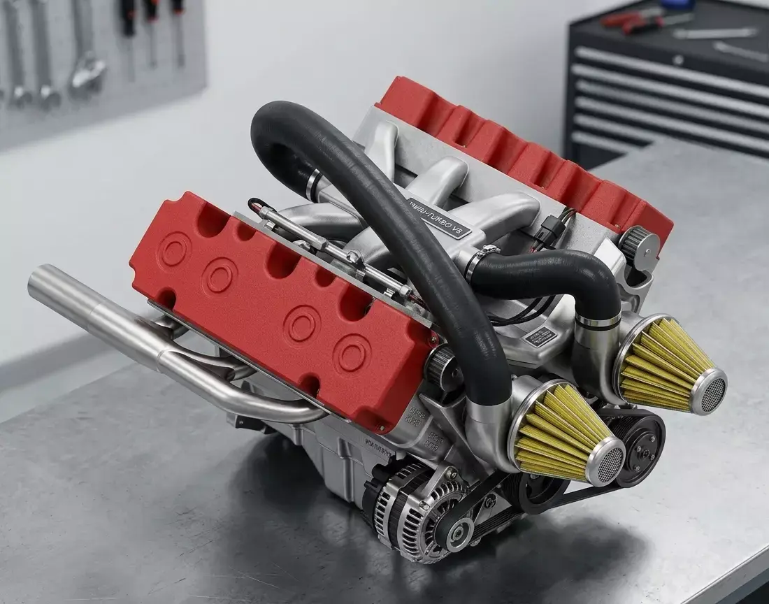 High quality, fully detailed and animated V8 engine 3d.