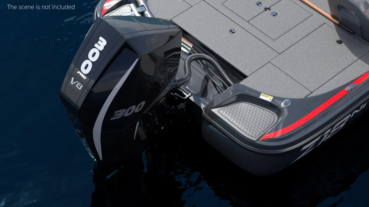 V8 Outboard Engine 300HP Black White is a 3d model of an outboard motor designed for high-performance boating.