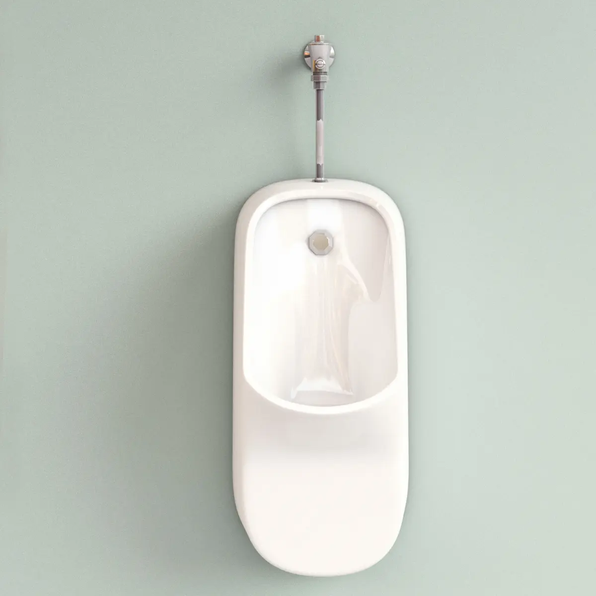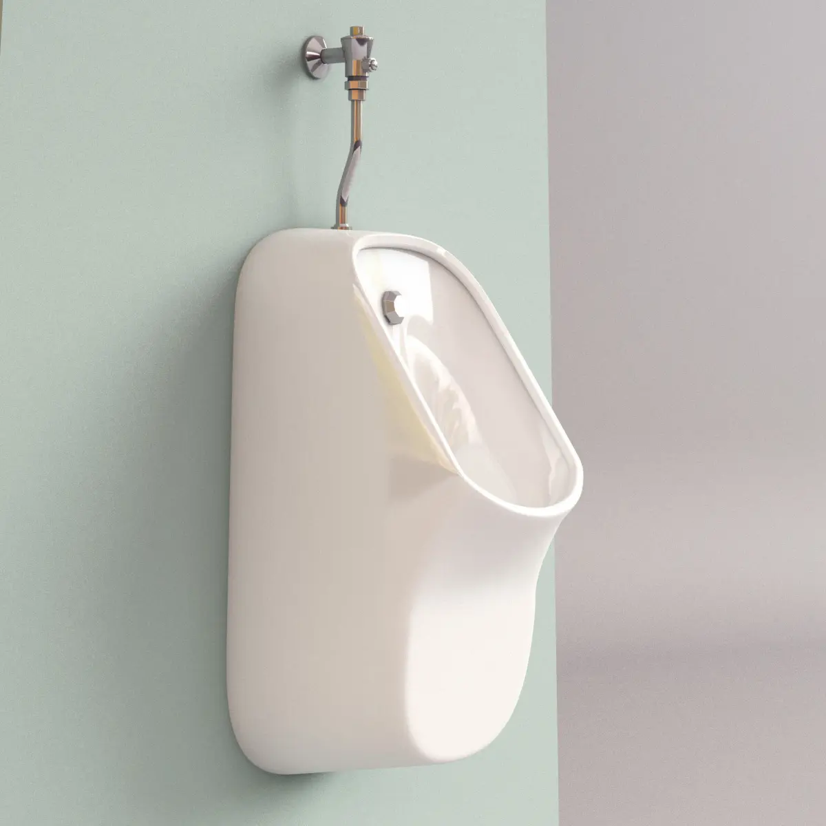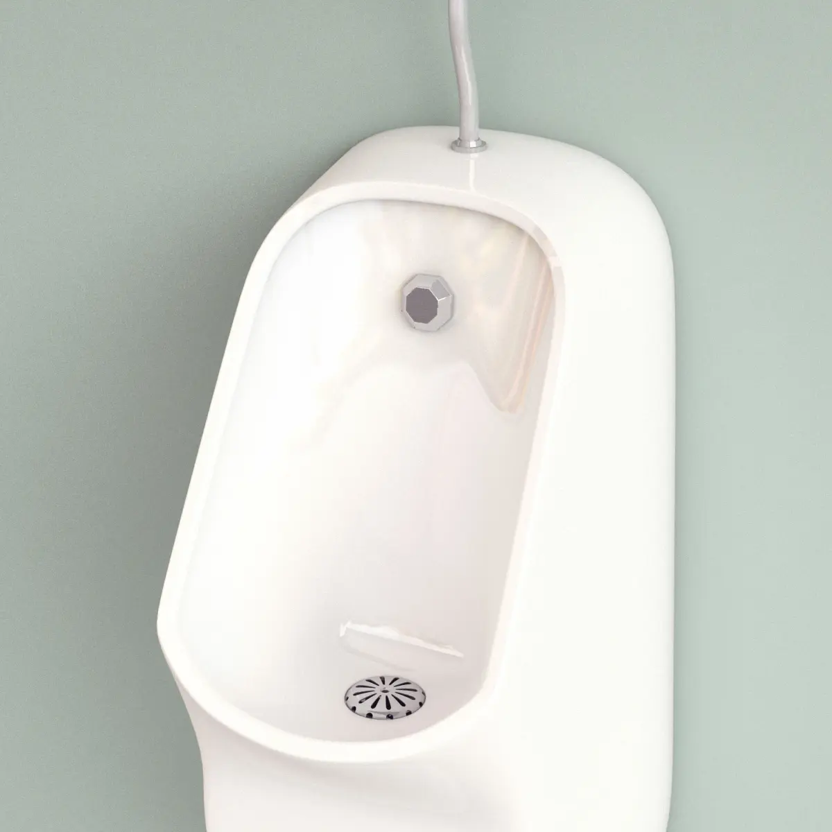 Wall-hung urinal, manufactured by Vaal, model Sweetpea.White enamel and stainless steel construction