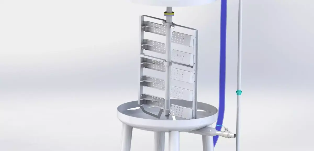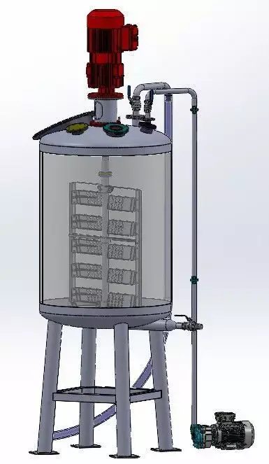 Agitator System: Vertical shaft with multiple paddle-type mixing blades for efficient blending