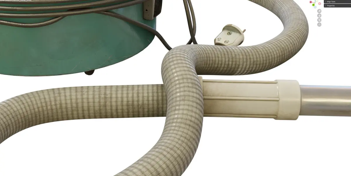 The wire and hose are separate objects. Pivot objects on the floor at zero coordinates, not merged.