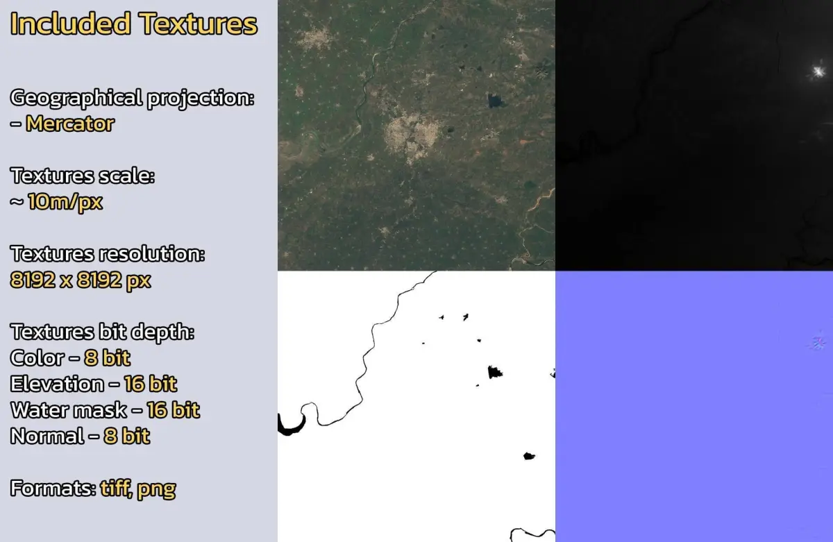 - Textures resolution: ~10m/px