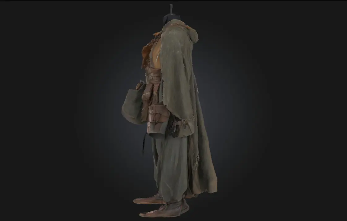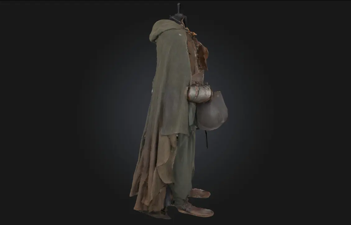 Vagabond Attire on Display captures the rugged charm and layered realism of a traveler’s wardrobe. Ideal for character design, post-apocalyptic scenes, or medieval fantasy settings, this outfit tells a silent story of survival, freedom, and life on the road.