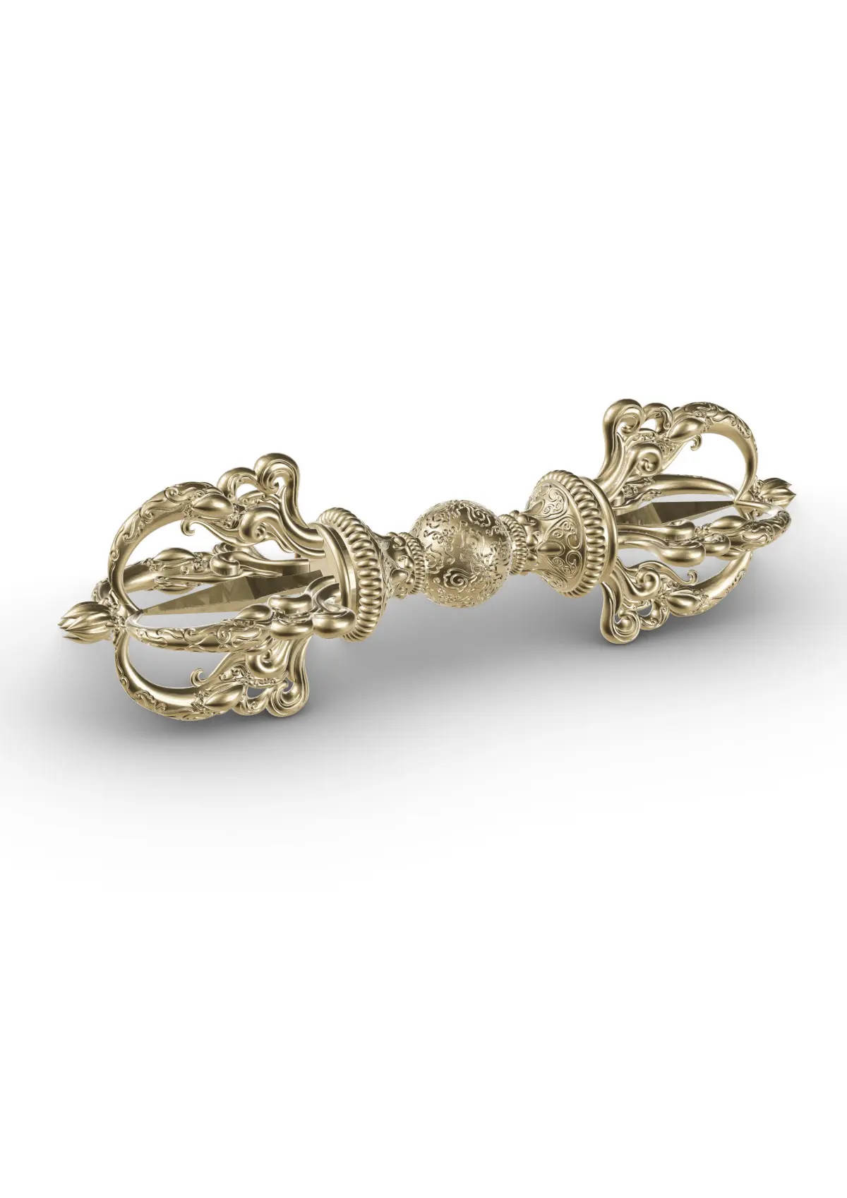 A vajra is a weapon used as a ritual object to symbolize both the properties of a diamond (indestructibility) and a thunderbolt (irresistible force); the Sanskrit word having both meanings. It is the signature weapon of the Hindu god king Indra, and is his most powerful weapon much like Zeus' Master Bolt and Thor's hammer Mjölnir.