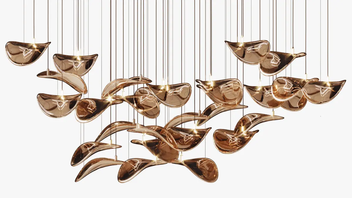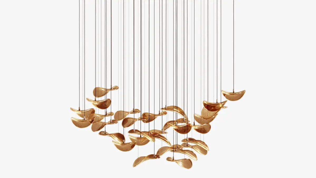 The Wave Floating Leaf Chandelier is expertly crafted for a unique and elegant lighting experience. With a stunning wave design and floating leaves, this chandelier adds a touch of nature to any space.