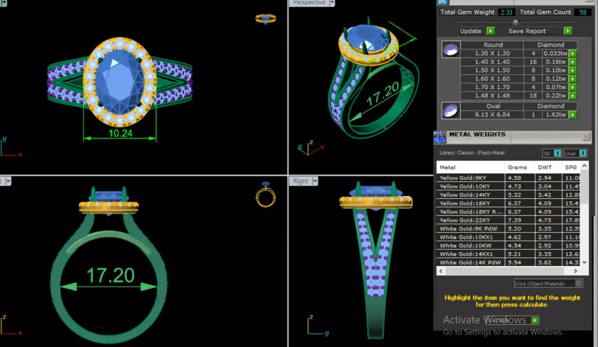 • Clean and organized layers• Editable prongs, shank, halo and settings• Accurate stone sizes and precise seats• Easy customization for resizing or redesign