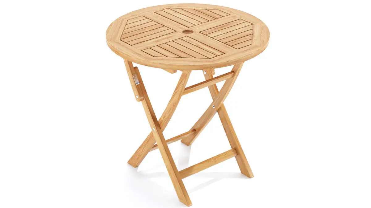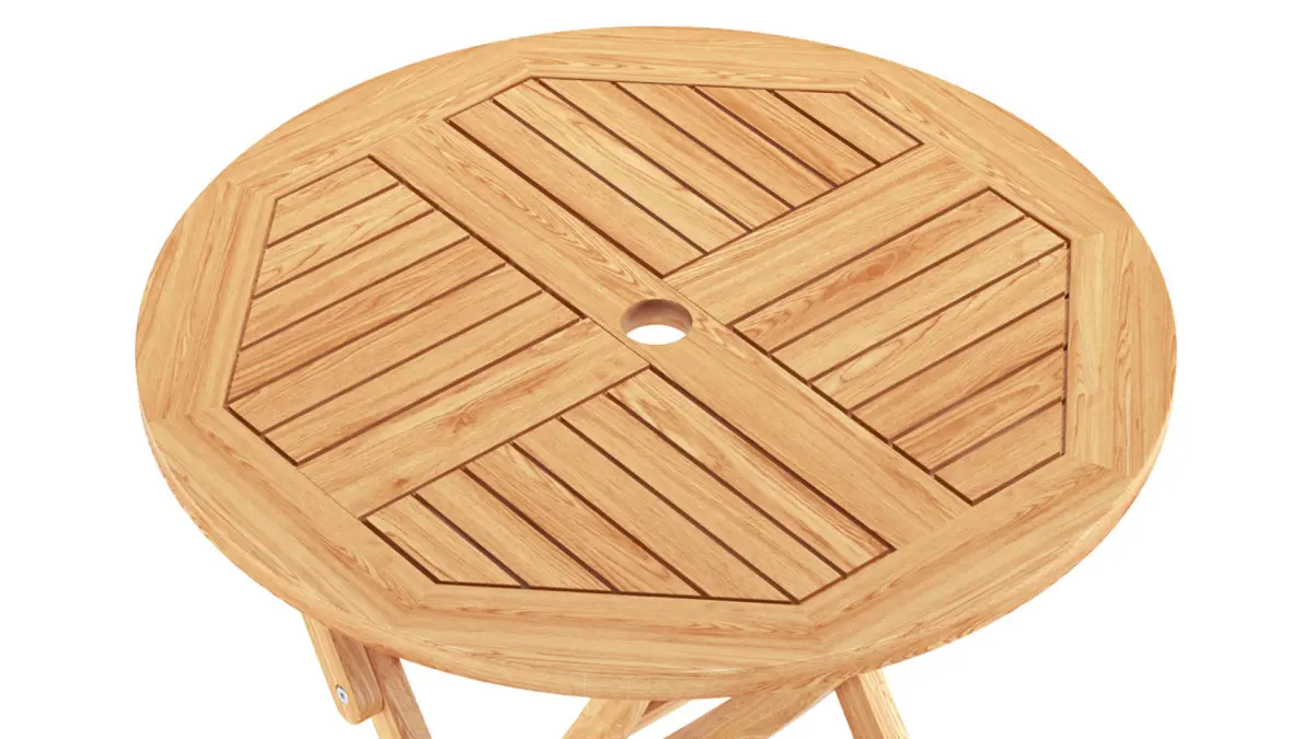 The practical Valencia Bistro Table is perfect for smaller balconies or a secret spot in the garden. This table folds away for easy storage and includes an umbrella hole, making it an ideal patio table that comfortably seats two to four people.