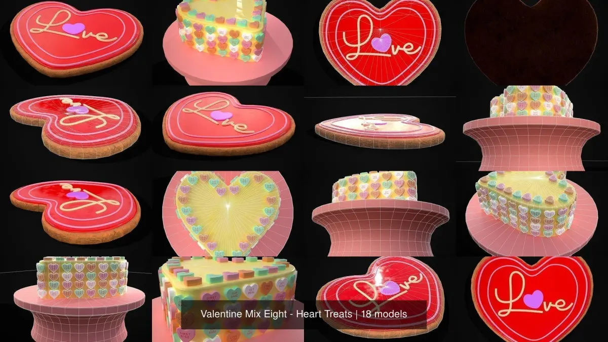 Valentine Mix Eight Heart Treats - 3D Models - Files Include FBX and OBJ. Includes PBR Texture in 4096 x 4096. - Maps include : Basecolor, Normal, Roughness, Height and Metallic. All Preview renders were done Marmoset Toolbag 4. Scaled to real world scale. Customer Service Guaranteed. From the Creators at Get Dead Entertainment. Please like and Rate! Follow us on FaceBook and Instagram to keep updated on all our newest models. Model can be used for any purpose except resale or redistribution of the asset if not used in a game, commercial or media project.