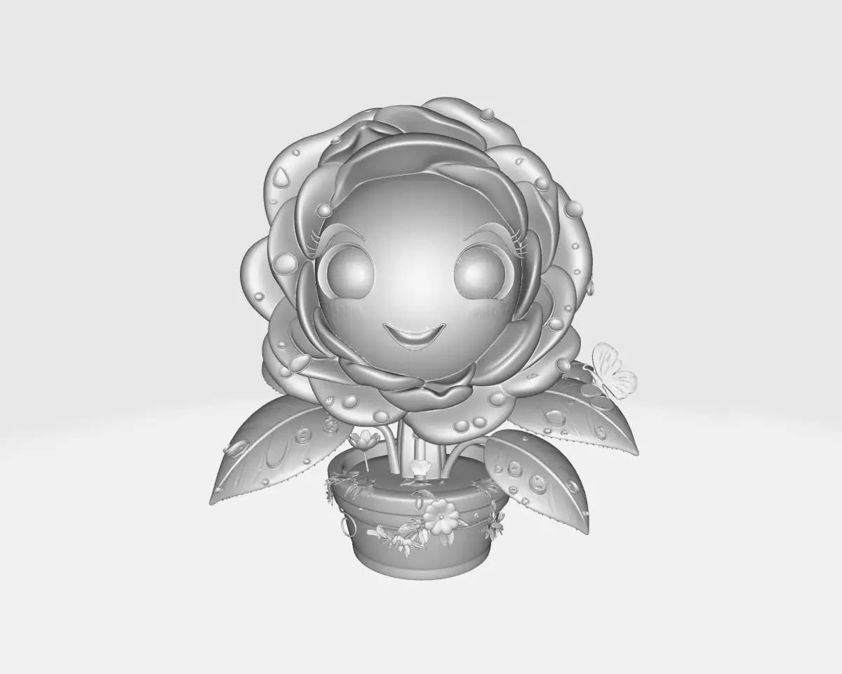 Celebrate love and joy this Saint Valentine with this adorable smiling rose planter, designed as a charming 3D printed decorative piece. This cute flower character features a glossy rose bloom with expressive eyes, soft blush cheeks, detailed petals with dew drops, vibrant green leaves, and a lovely butterfly accent that adds a romantic and whimsical touch. Planted in a decorative pot adorned with floral details, it makes a heartwarming gift for Valentine’s Day, anniversaries, birthdays, or simply to brighten someone’s space.