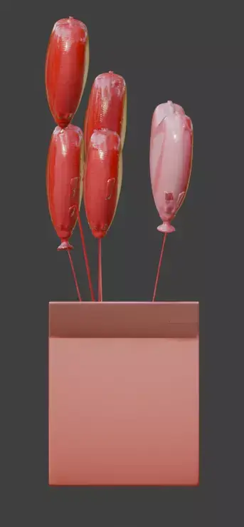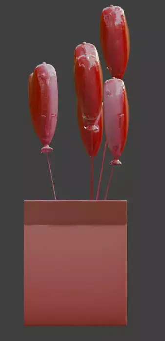 The balloons feature a high-gloss latex material that exhibits sharp, realistic specular highlights and reflections.