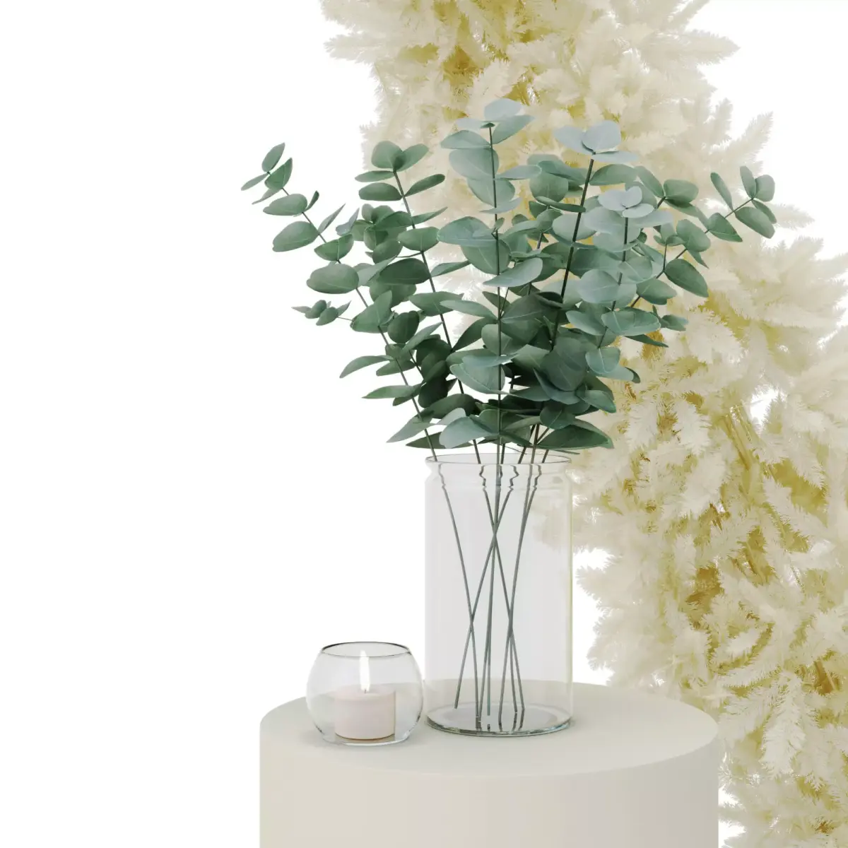- Vase (2) with a composition of eucalyptus branches