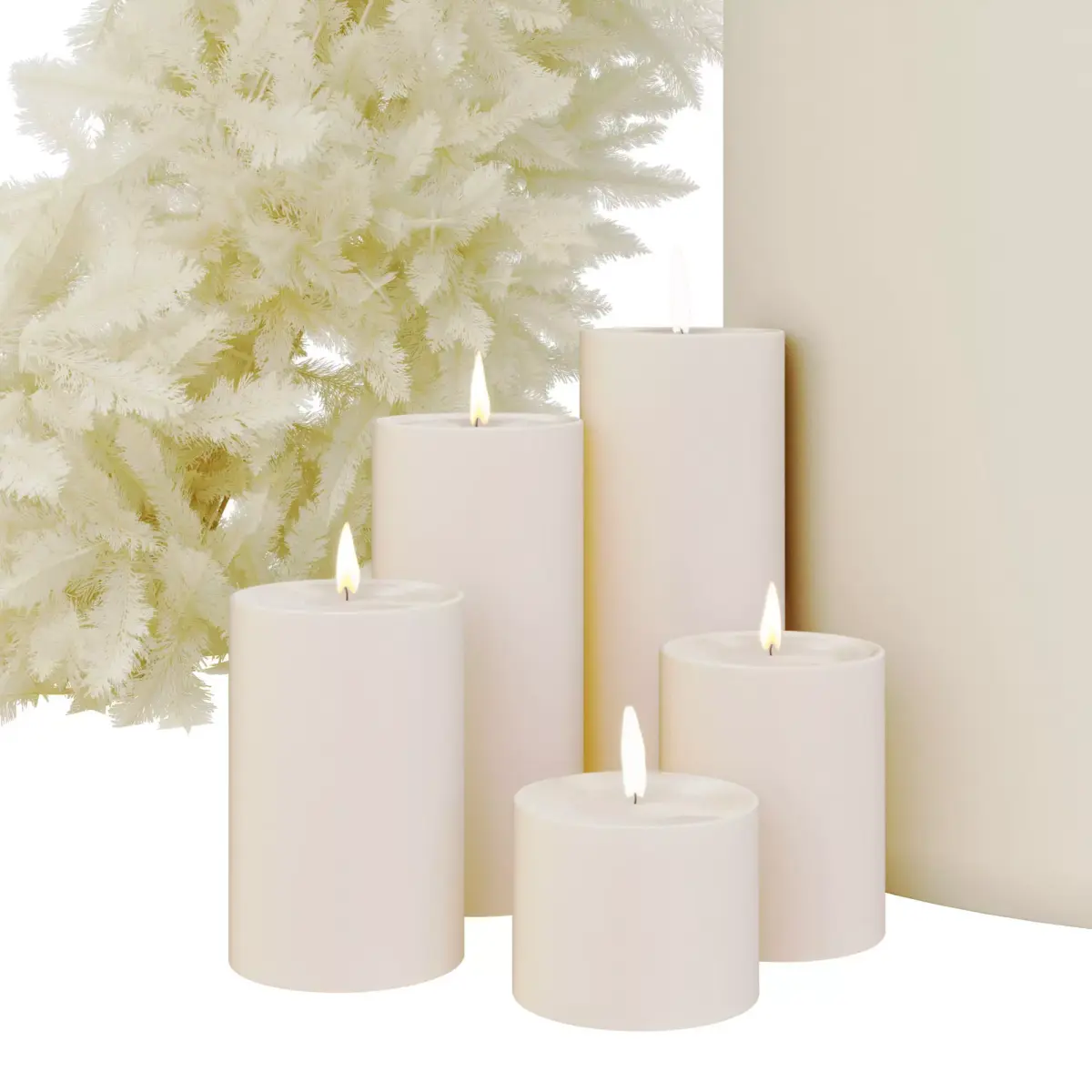 Color Palette: Monochrome ivory and cream with natural greenery accents.