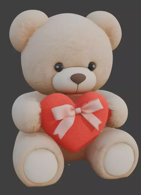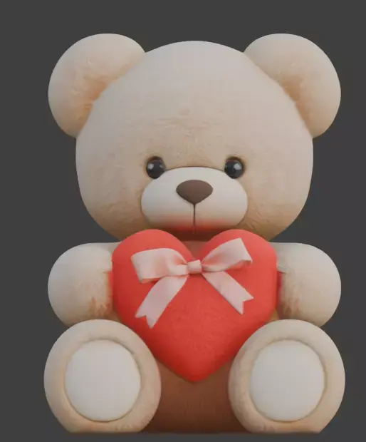 Tagsvalentine bear, 3D plush model, romantic teddy, gift asset, PBR plush textures, cute 3D character, virtual gift, AR/VR ready, soft material, tan teddy