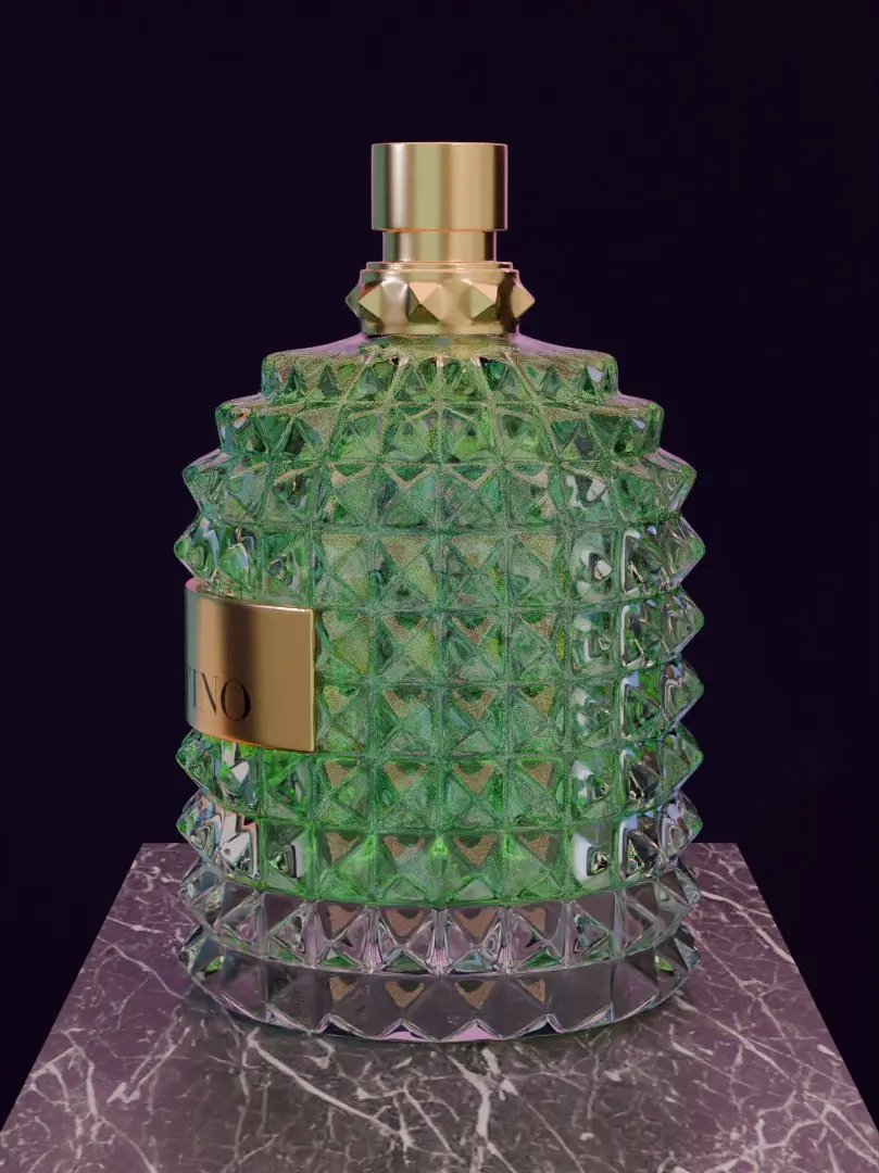 I am glad to present you a 3D model of one of the variants of a bottle for perfume from the company Valentino in green color, the model itself is a 3D model of a bottle for perfume from the company Valentino, inside there is pink liquid. It has a logo on a gold-colored p center of the bottle. Models are ideal for your projects, games, editing, animation, videos, games, compositions, advertising, video, etc. Also, you will find a set of models of such perfumes, only there are all nine variants of such perfumes, and there will also be individual ones, so that you can buy either a set or one of the variants.