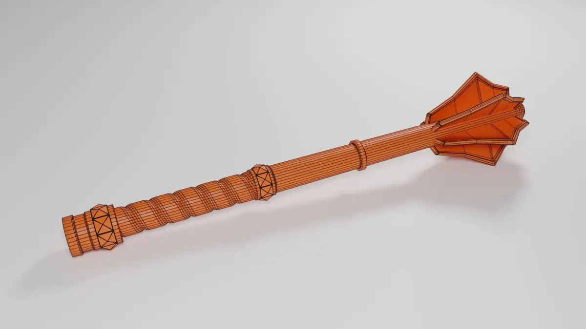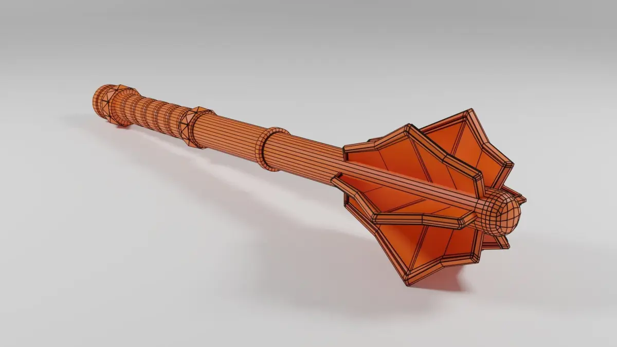 A gothic styled melee battle mace. This mesh is meant to be subdivided to your desired detail level and the provided textures will work with a PBR workflow. You will receive an albedo/color map, a roughness map, a metalness map, and a normal map along with the mesh model. All textures are 2048 x 2048 pixels. This mesh consists of quads only, so adding your own details or reworking the topology to your liking should be no problem.