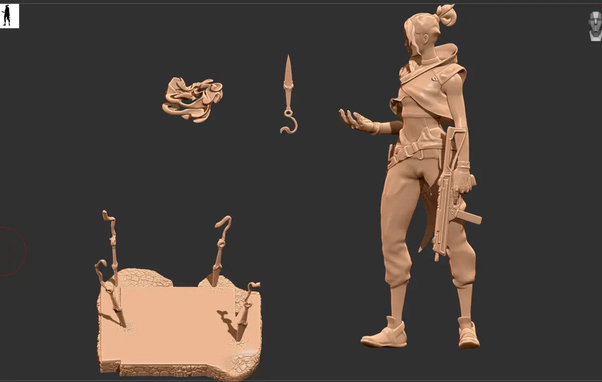 Combined for one piece printing with supports from Zbrush, but you can always slice to pieces in software like flashprint. Cinema 4D and Zbrush used. Comes with separate pieces as shown in the image also.