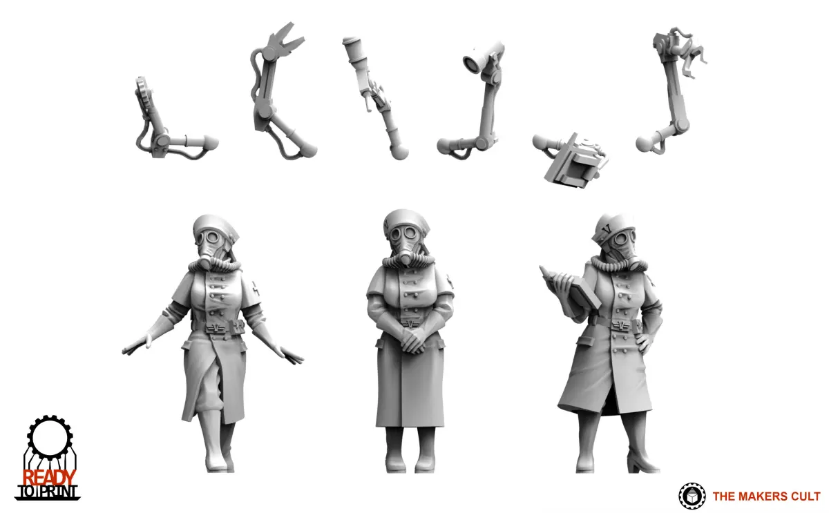 3 miniatures with 6 modular bionic arm options. presupported for resin printing, 28mm scale