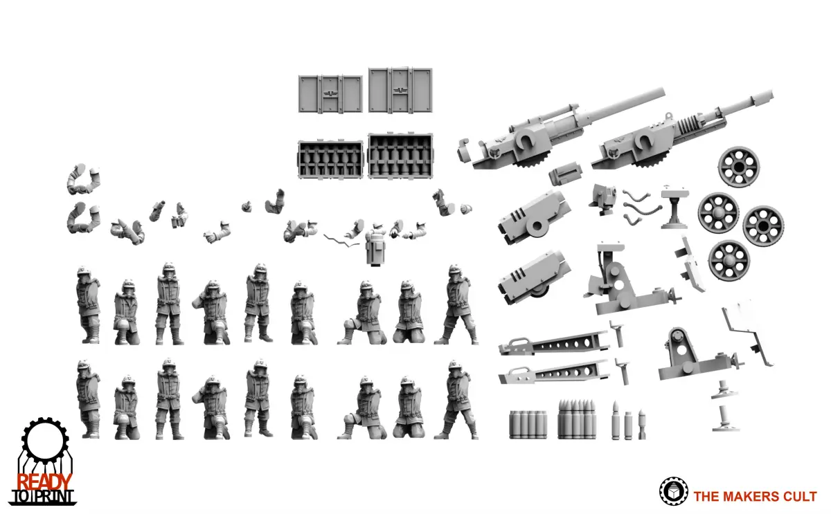 multipart kit which includes both artillery and crew. Lots of otions. presupported for resin printing