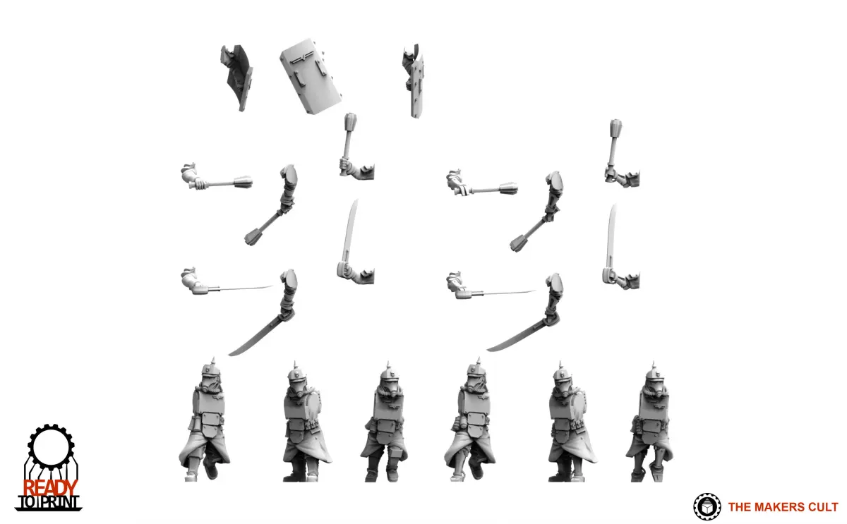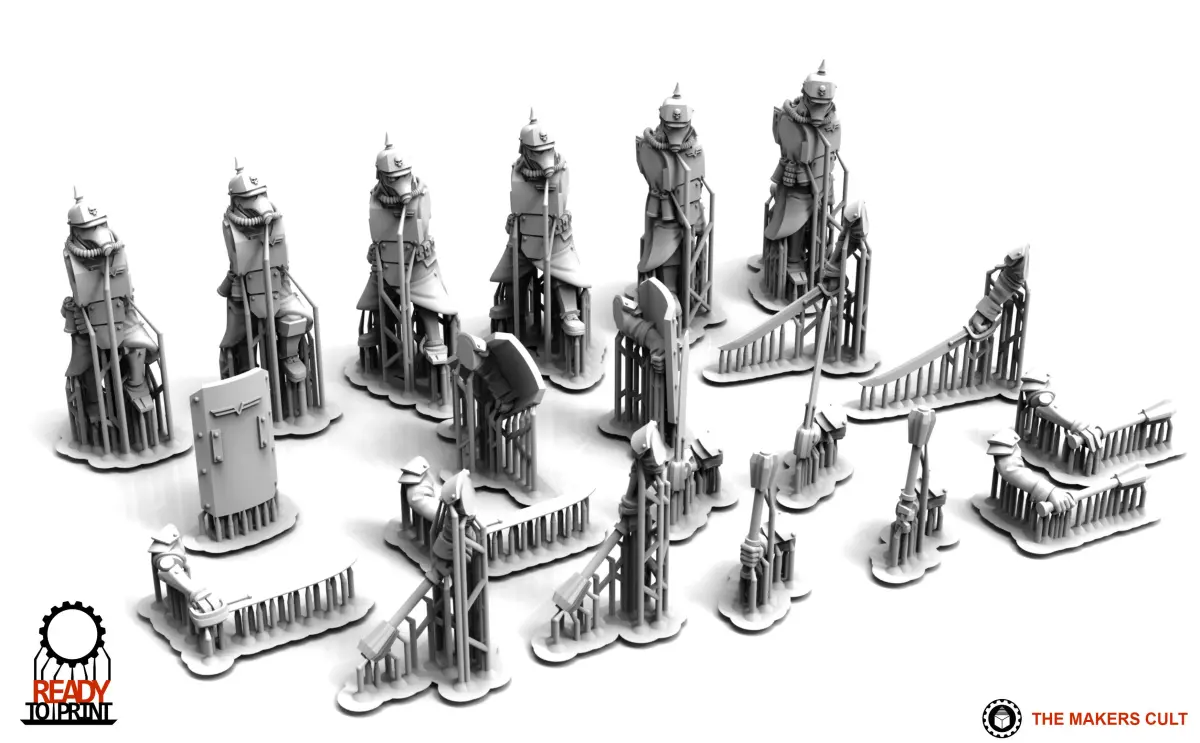Multipart miniatures, modular and compatible with other VK kits. Presuported for resin!