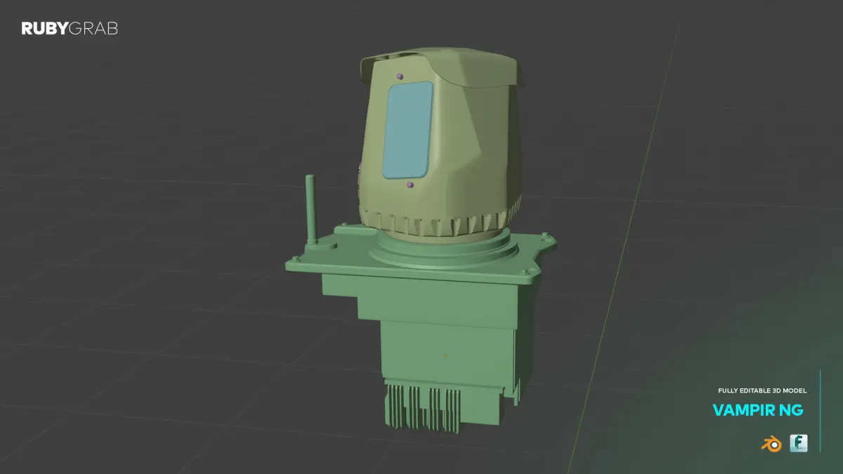 High-quality and fully editable model of the Vampir NG electro-optical system, ideal for military, surveillance, or industrial visualization projects. This package includes .blend and .fbx files for easy integration and customization in various 3D software.