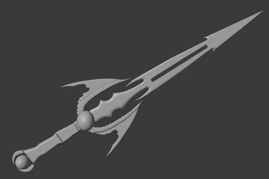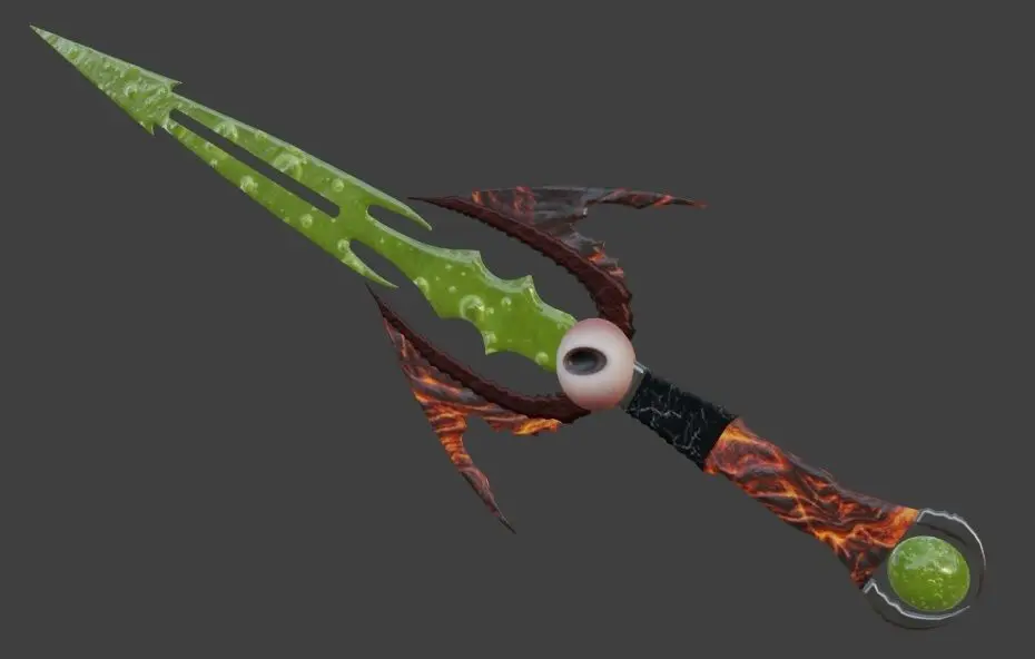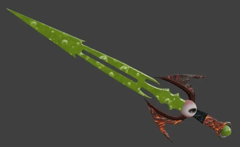 3D model created with realistic textures, high polygon loading (High-Poly) and with its own design on textures. It is made up of 5 parts: blade, handle, guard, knob and its large, all-seeing eye.