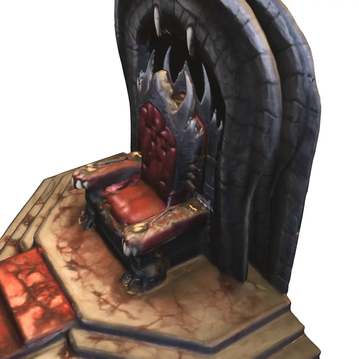 Designed for use in horror and fantasy games such as Diablo, Castlevania, Elden Ring, Skyrim, Bloodborne, and Dark Souls, this model functions as an environment prop, cinematic piece, or interactive seat for player characters and bosses.