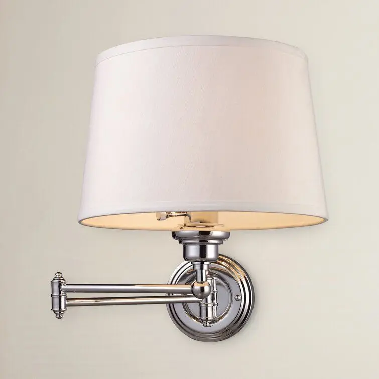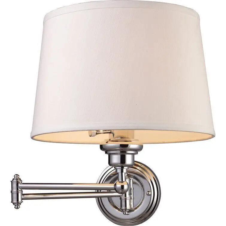 - The collection uses the swing arm concept on chandeliers, allowing the diameter to be adjusted to fit your decor. This unique feature puts light where you need it, when you need it. This fixture offers versatility coupled with a sleek design. Available in polished chrome with a white hardback shade or antique brass with a cream shade