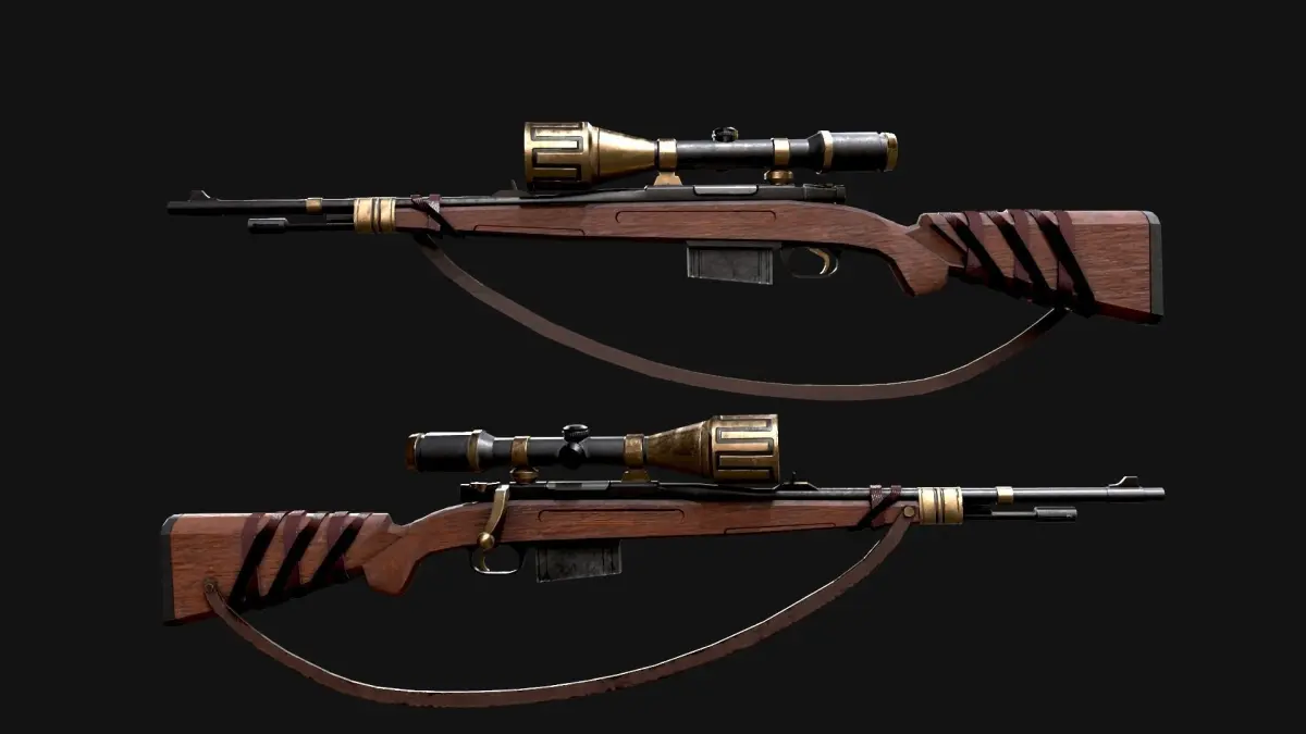 A Classic Hunting Rifle crafted of antique wood. Good for hunting deer, rabbits, birds, and more. The rifle can be used in self-defense against enemies and even deadly bears.