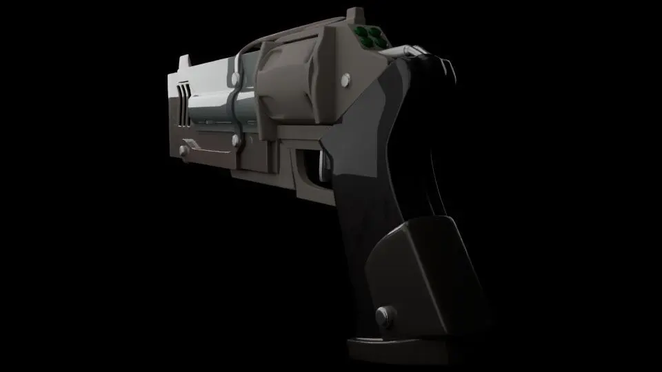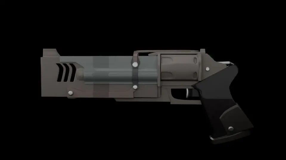 Introducing the Vanguard Revolver, a high-tech sidearm designed for futuristic warriors and space mercenaries. This stylized hand cannon blends sleek industrial design with heavy-duty firepower aesthetics. Modeled with clean geometry and attention to detail, perfect for use in sci-fi game environments or cinematic concepts.