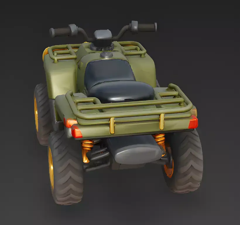 The Overall ConceptThis asset is a high-speed scout vehicle built for quick tactical maneuvers. It is a rapid-response military ATV featuring a rugged olive-drab finish and luxury gold accents, making it a perfect hero vehicle for reconnaissance missions, racing challenges, or as a rare collectible in stylized combat games.