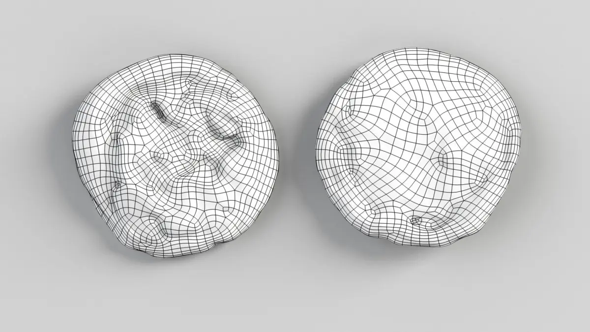 High quality scan using cross polarised light. As a result the texture captures the actual diffuse map of the bread.