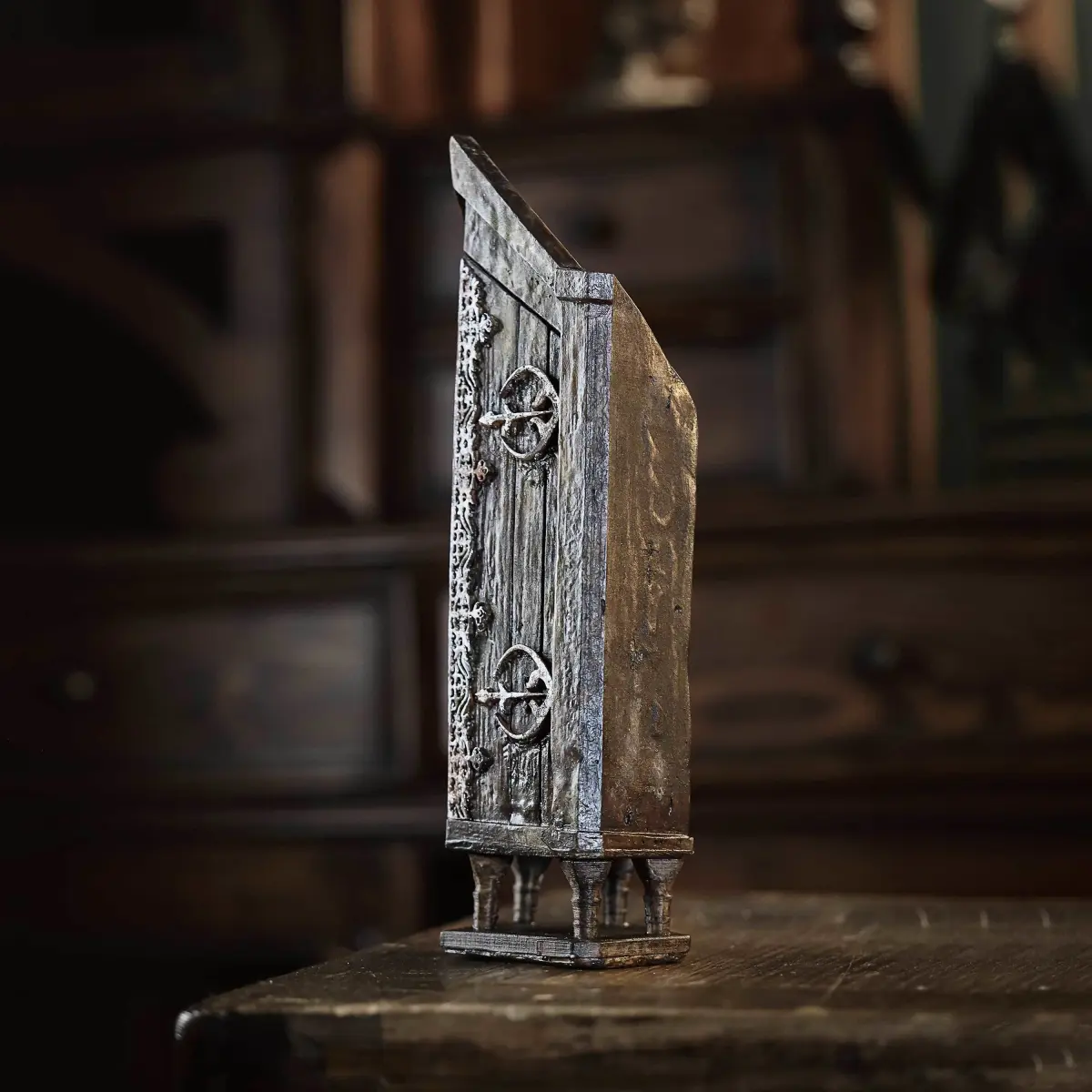 I created a Harry Potter inspired Vanishing Cabinet. I have always been attracted to its unique and dark magical design.Draco Malfoy used it to allow some Death Eaters to enter Hogwarts from the Borgin and Burkes Vanishing Cabinet in Harry Potter and the Half-Blood Prince.