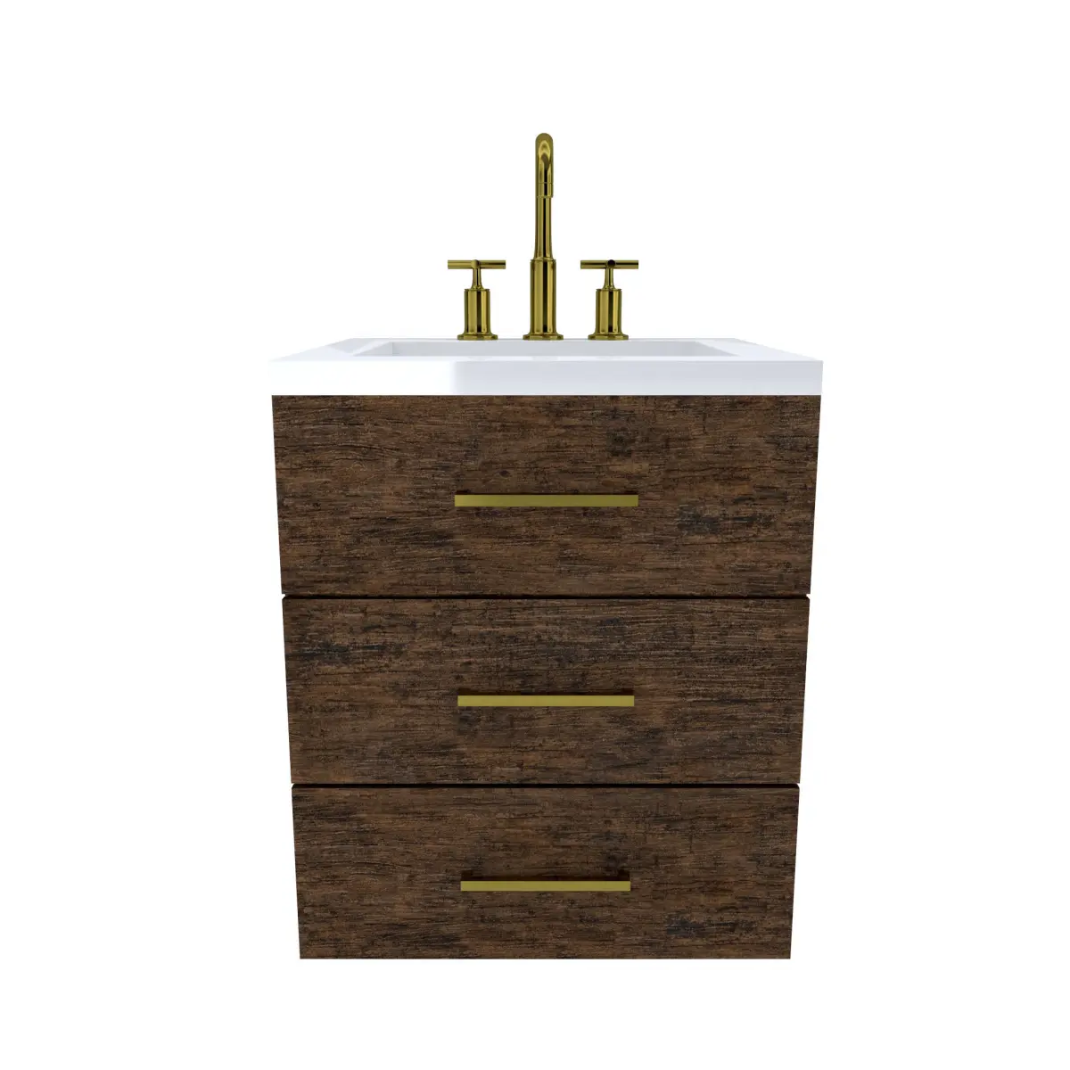 Vanity-005- Floating Wall Mounted Cabinet3 Drawer Vanity Cabinet with wood finish (Exterior Only, Interior of cabinet NOT modeled)