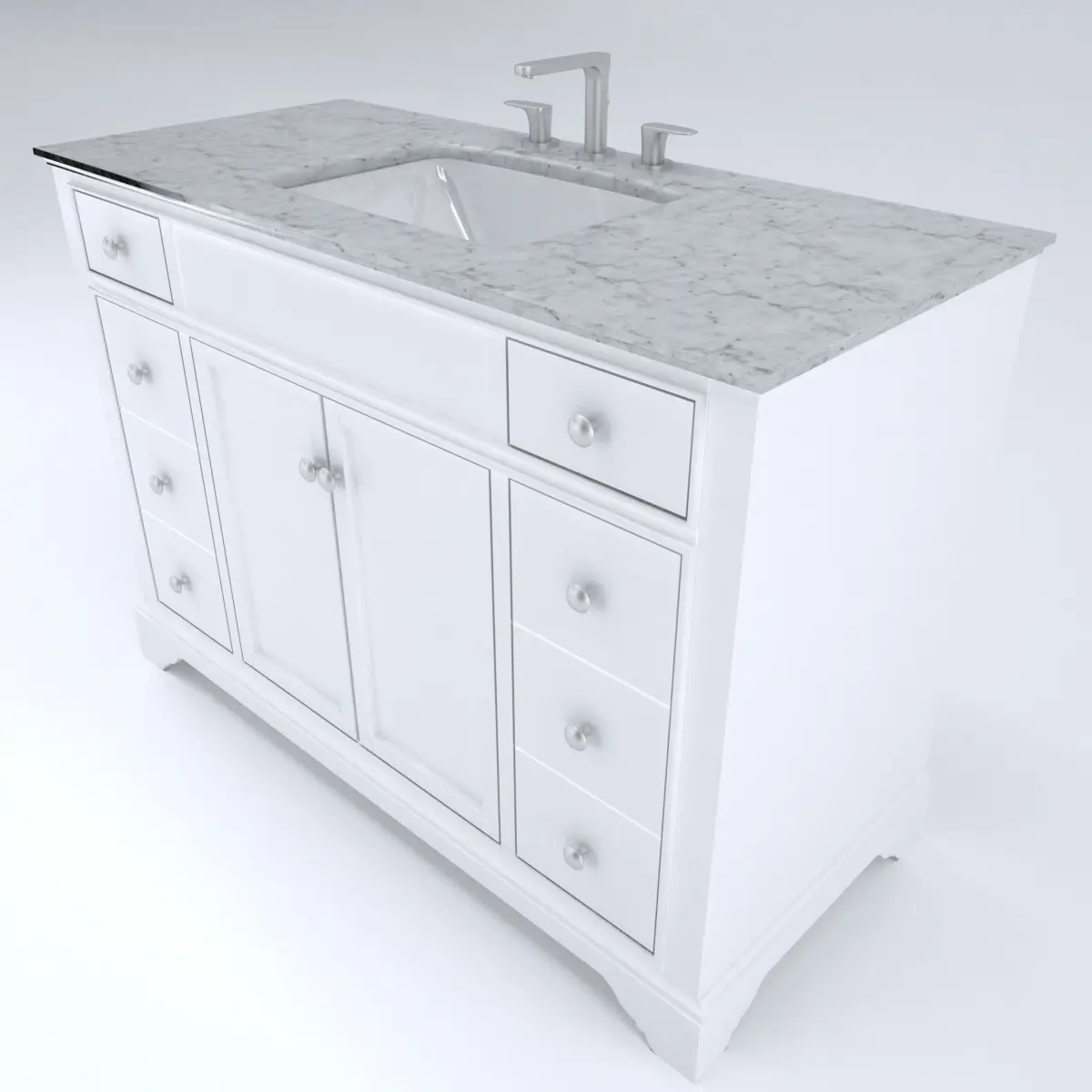 -Interior of Cabinet NOT modeled.-Modeled in 3ds Max 2015, Rendered using Vray.-Materials set to Vray rendering enginge-All Objects grouped into 1 group for easy scene movement-Model set to 0,0,0 Axis for easy scene movement-All Materials Included: Brushed Aluminum for faucet, and White marble for countertop