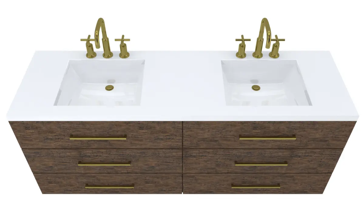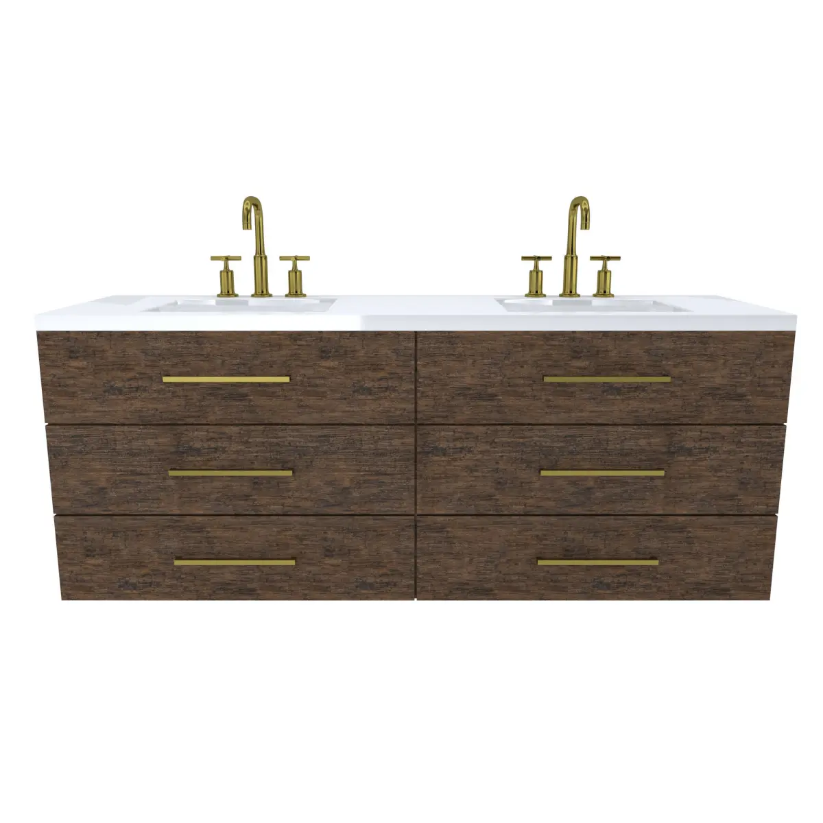 Vanity-007- Floating Wall Mounted Double Vanity Cabinet6 Drawer Vanity Cabinet with wood finish (Exterior Only, Interior of cabinet NOT modeled)
