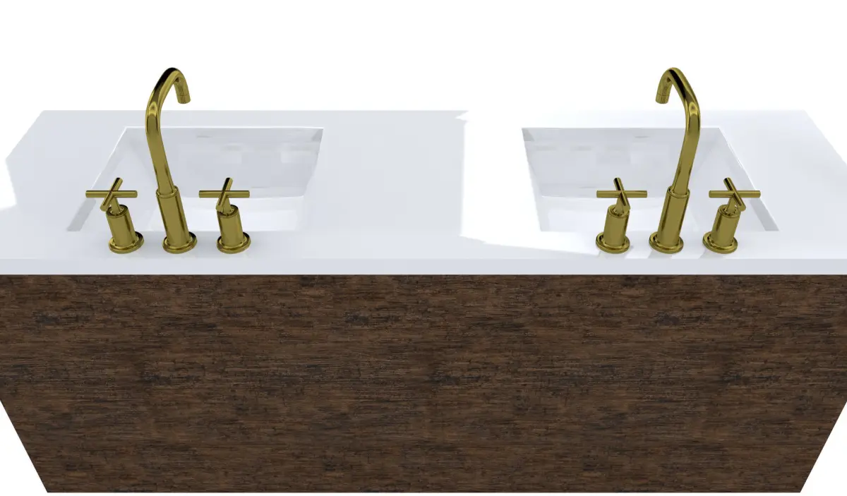 Wood Finish Cabinet with Gold Kohler Purist Faucet Modeled to Scale and Dimensions : 22'D 72'W x 28'H (34' to top of Counter top)