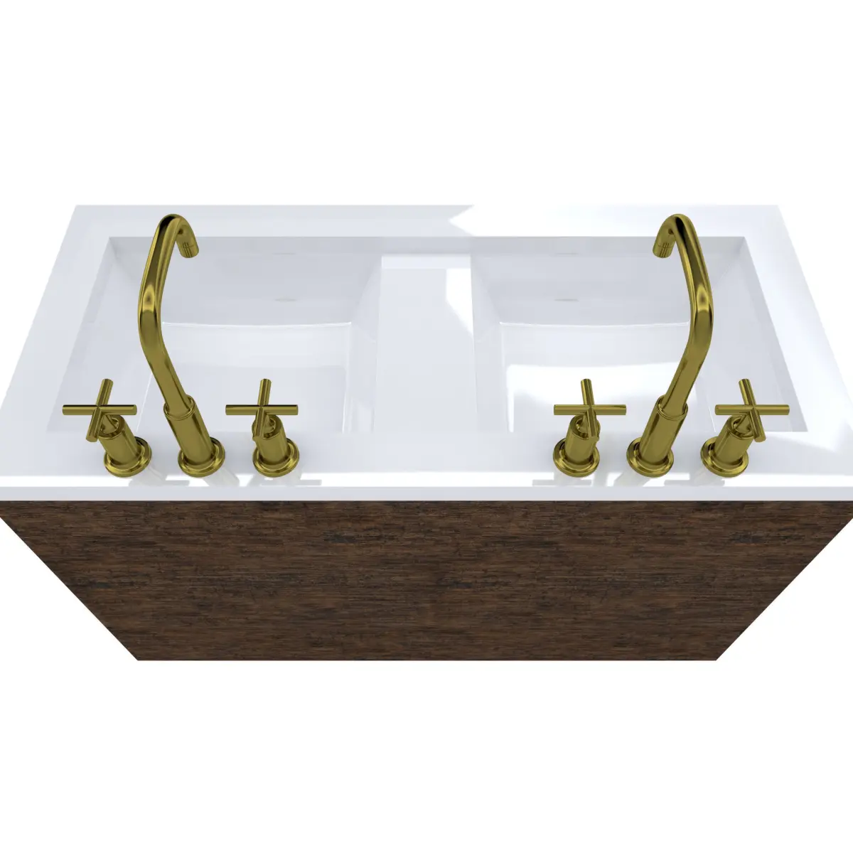 Wood Finish Cabinet with Gold Kohler Purist Faucet Modeled to Scale and Dimensions : 22'D 48'W x 28'H (34' to top of Counter top)